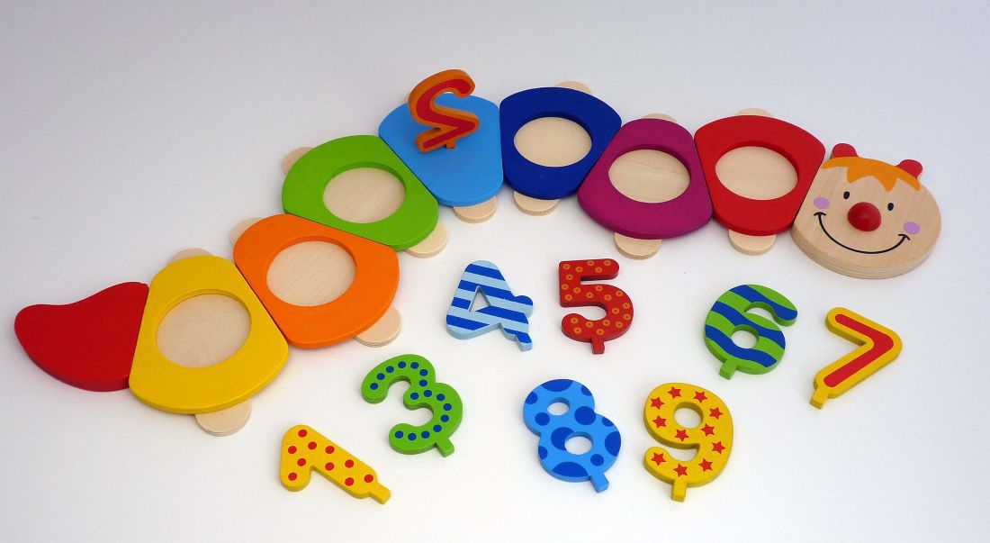 Bunte Holzraupe für kleine Geburtstagsüberraschungen mit Zahlen und Platz für Teelichter. (Packung ohne Teelichter)