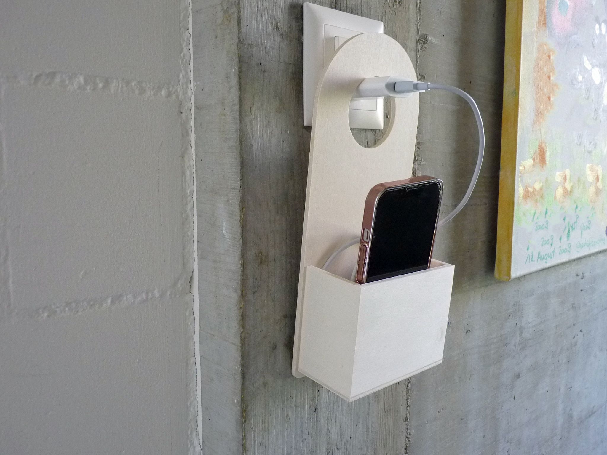 Nachhaltige und praktische Handystation (ohne Kabel) hergestellt in der Schweiz aus zertifiziertem Holz zum Selbstgestalten. Ideal für kreative Geschenke. Holzart: Papperlsperrholz FSC 100%. Ausschnitt Ø ca 5cm.