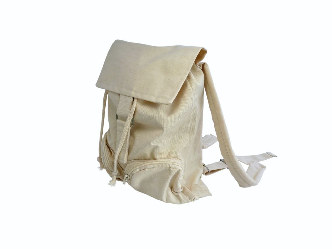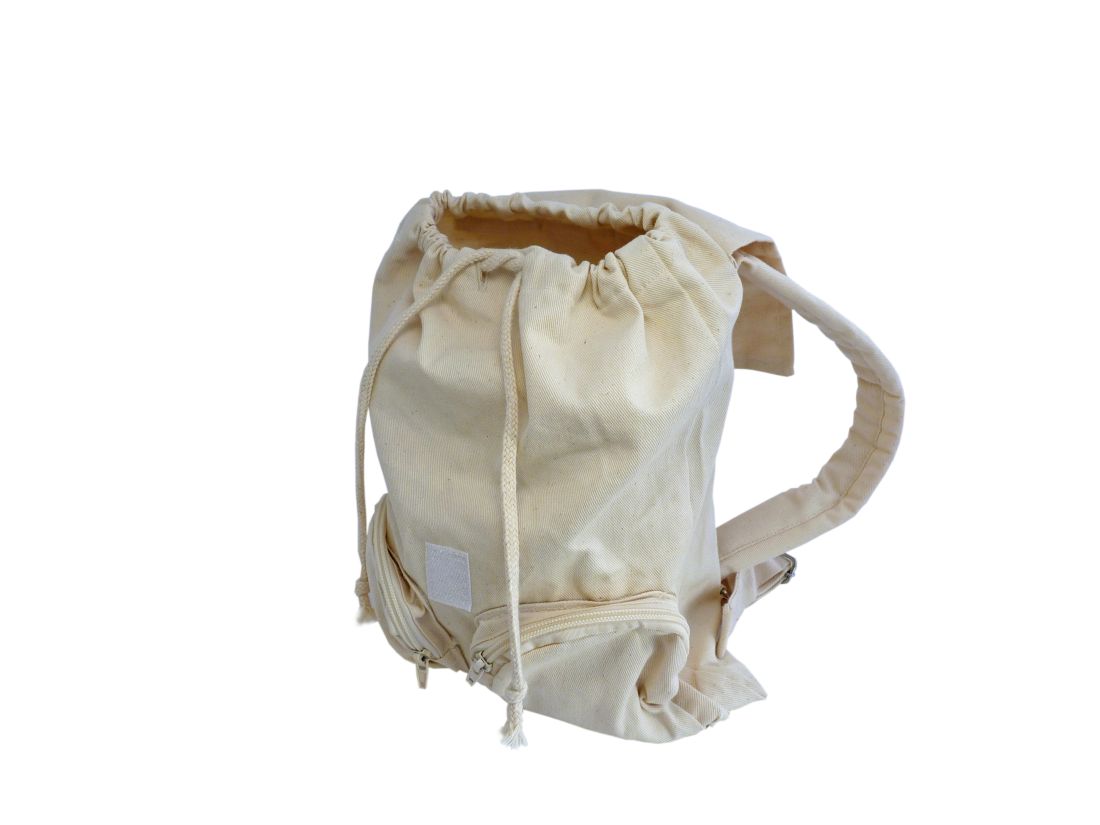 Natur, Baumwolle mit 2 Aussentaschen und verstellbaren Trageriemen. Geeignet zum einfärben oder bemalen.