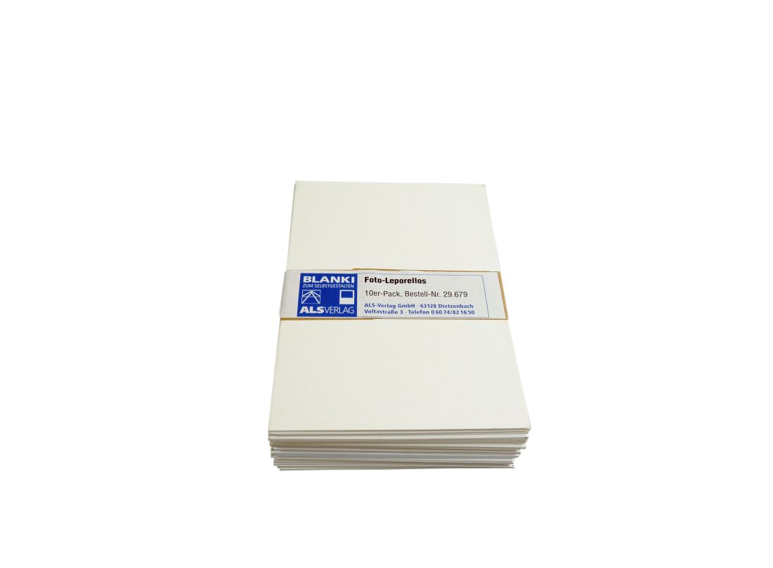 Foto-Leporello Blanki aus festem 250g/m2 starkem Karton, fünfmal genutet und gefalzt. Ink. 20 Korrekturblättern zum überkleben. Seitenformat 10,5x14,8cm, offen 63x14,8cm