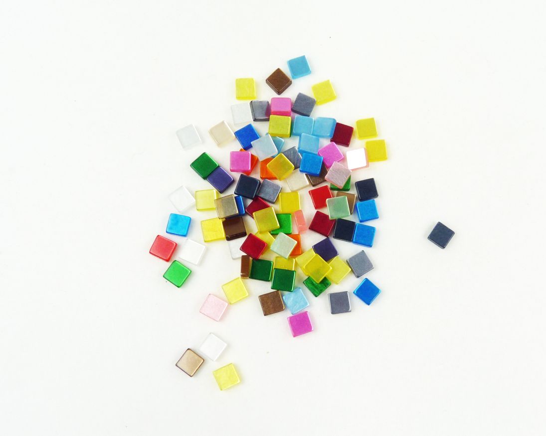 5 x 5 mm, 45 g in Packung, ca. 700 Stück, aus hochwertigem, leichtem Kunstharz (Resin), farbig sortiert.