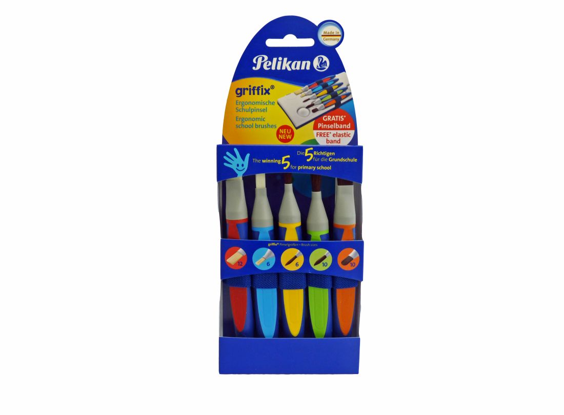 Pinsel griffix Pelikan mit synthetischen Haaren in guter Qualität, robust und formstabil, mit ergonomischem Dreikantgriff mit Wegrollschutz, kindgerechte Länge, rutschfeste Oberfläche, mit Namensfeld, inkl. Band zur Aufbewahrung. Geeignet für verschiedenste Maltechniken.