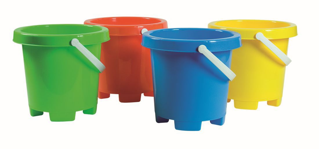 Stabiler Kunststoffsandeimer zum Sandburgenbauen. Farblich assortiert.