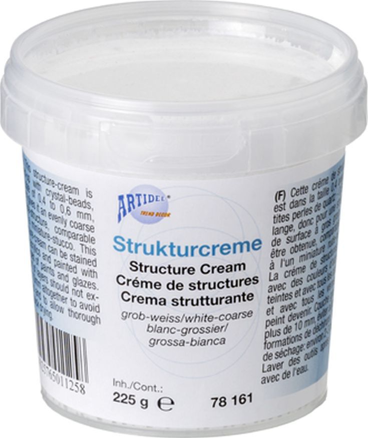 Weisse, mit Quarzsand durchsetzte Spachtelmasse zur Herstellung körniger Oberflächen. Kann mit wasserlöslichen oder wasserfesten Farben eingefärbt oder nach dem Trocknen (2-3 Stunden) übermalt werden. Sehr gut haftend, geeignet für kreative Gestaltungsarbeiten.