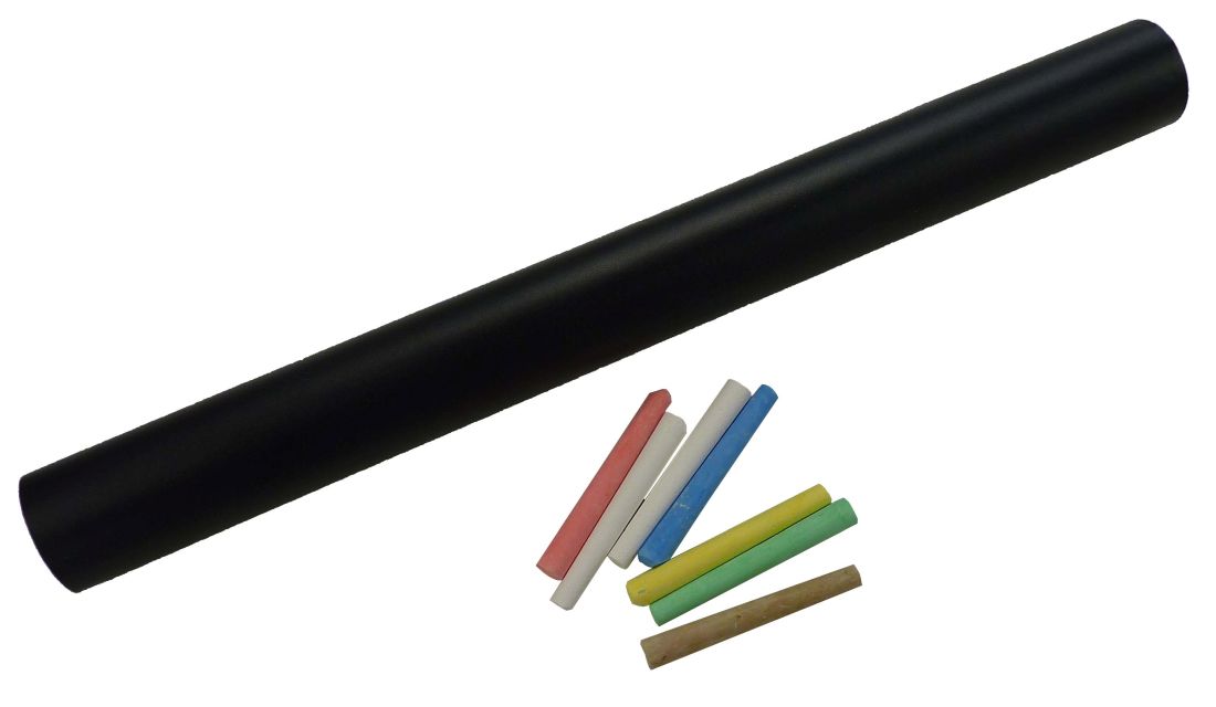 1 Rolle selbstklebende Tafelfolie, 45cmx2m, schwarz. + 10 Tafelkreiden (5x weiss, je 1x gelb, rot, blau, grün, braun)