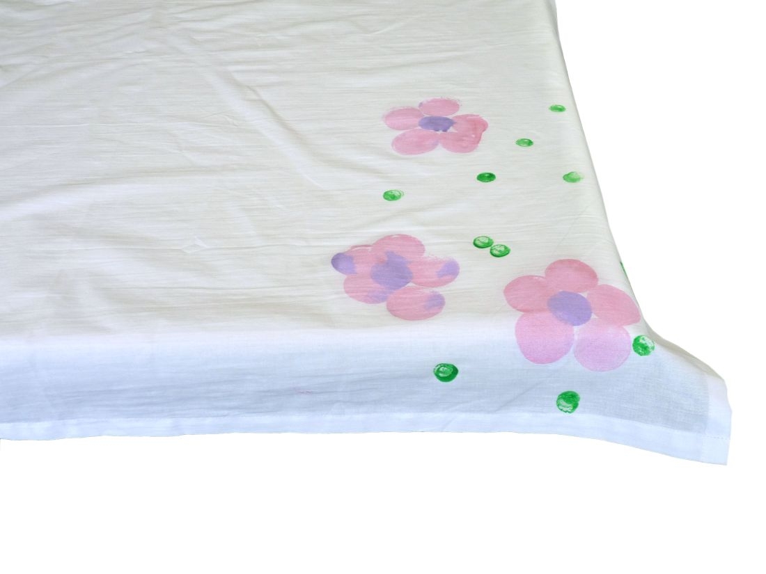 Weisses Baumwollgewebe. Lässt sich gut bemalen oder bedrucken. Waschbar bis 30 Grad.