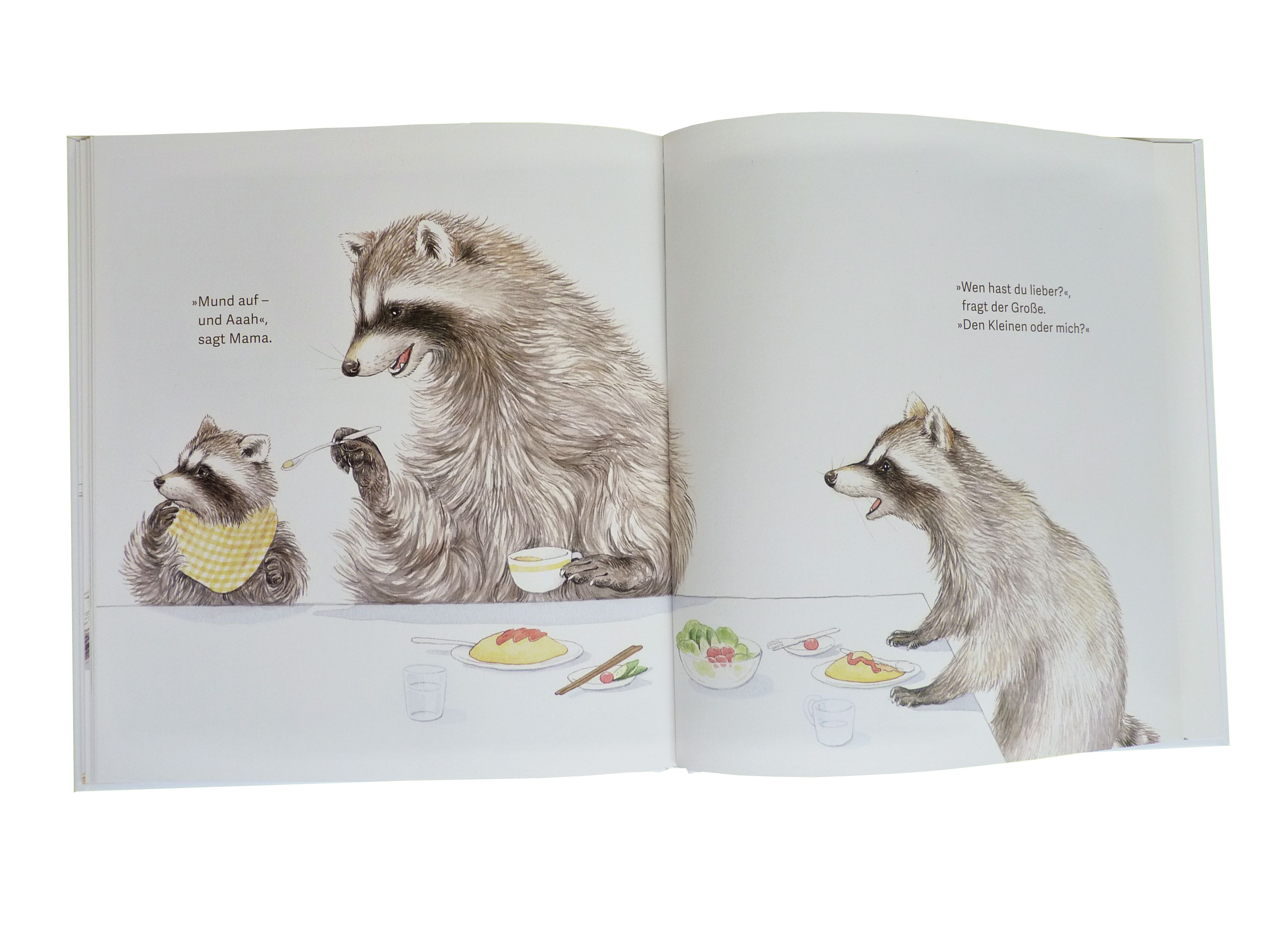 Das kleine Geschwister löst beim größeren immer wieder die Frage aus, wen die Mutter lieber habe. Schließlich wehrt sich das ältere Kind mit Brüllen. Eine große Frage für eine kleine Geschichte, großartig gelöst: Die Mutter findet einen Weg, dem älteren Geschwister zu zeigen, wie sehr sie es vermissen würde. Jetzt haben die zwei Kinder konkrete Erlebnisse, dass ihre Mama beide liebt. Und die Mama kann auch ein Papa sein.