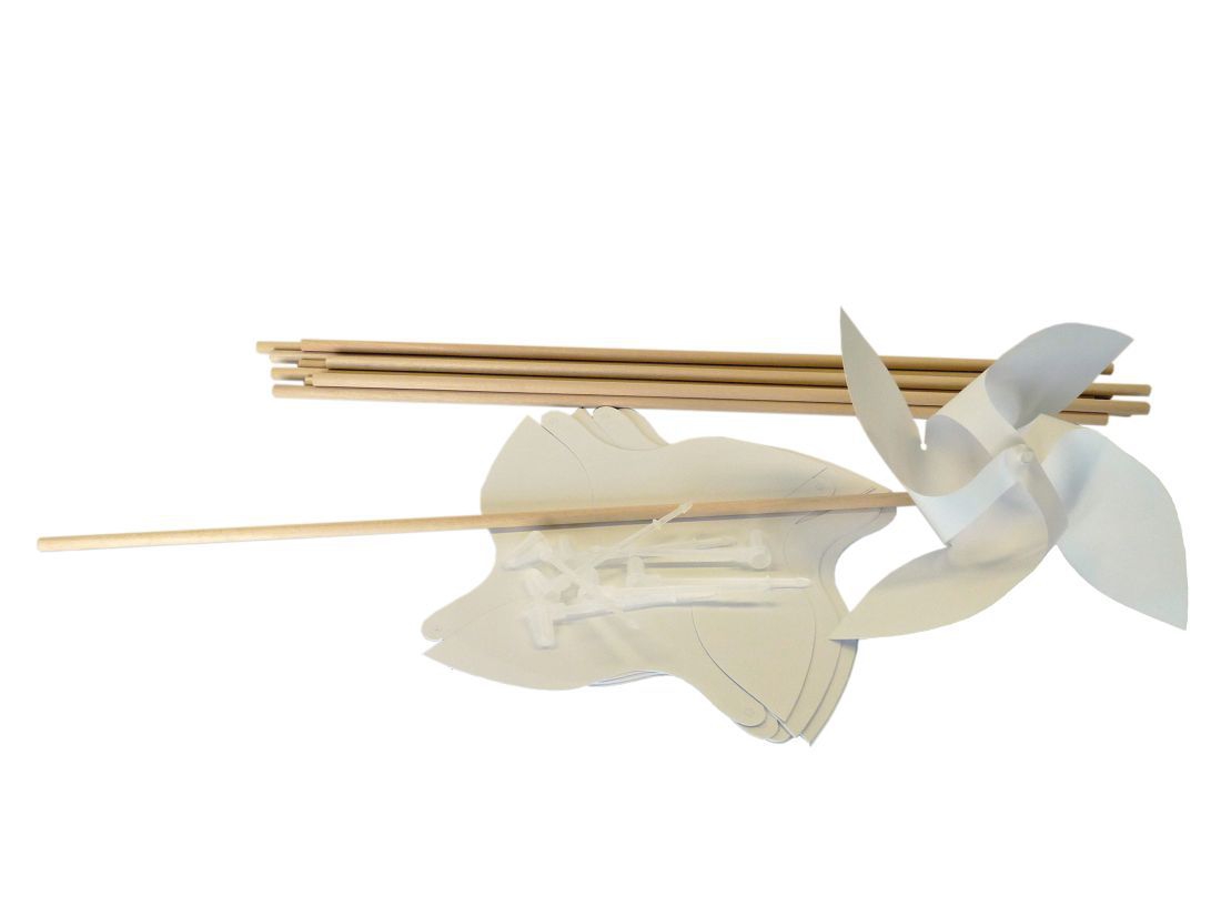 Die ausgestanzten Windräder aus Kunststoff lassen sich prima bemalen und leicht zusammenstecken. Inkl. Holzstäbe und Aufsteckstücke.