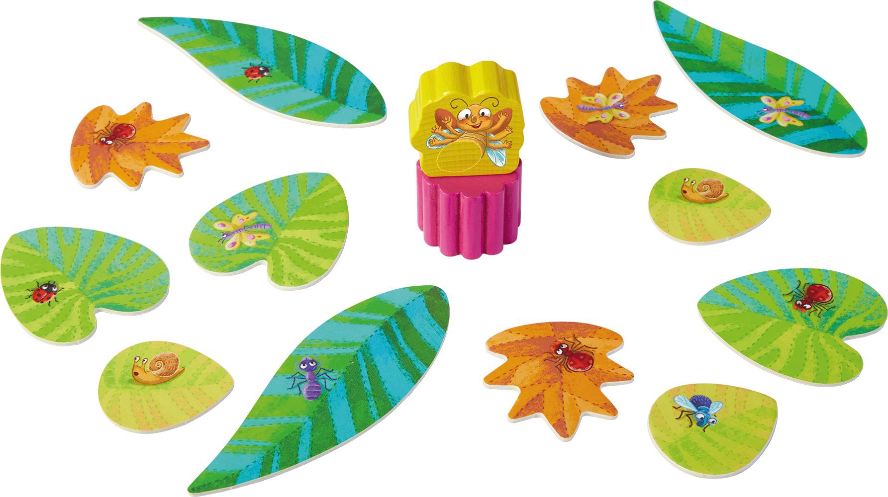 Da leuchtet doch was! Raupe Ralf reckt sich und entdeckt einige Blätter entfernt Glühwürmchen Gloria. Er möchte unheimlich gern mit ihr spielen … Wer hat etwas Würfelglück und schafft es, mit der kleinen Raupe zum Glühwürmchen zu laufen, bevor Gloria das Ende des Blätterwegs erreicht hat und wegfliegt? Bei allen drei lustigen Spielvarianten trainieren 1 bis 3 Glühwürmchen-Fänger Feinmotorik, Gedächtnis und erstes Regelverständnis. Inhalt: 1 Glühwürmchen Gloria, 1 Raupe Ralf, 1 Würfel, 1 Blume, 12 Blätter, 1 Spielanleitung. Spieldauer ca. 5 Minuten